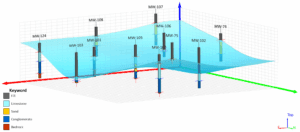 Automatic Surface Creation – Building on the ability described above to create contact points in drillholes, Surfer now automatically connects the points to generate surfaces of lithologic formations, mineralization zones, and other features. Users have the option of defining each surface as ‘depositional’ or ‘erosional’ to limit its cross-cutting characteristics.
